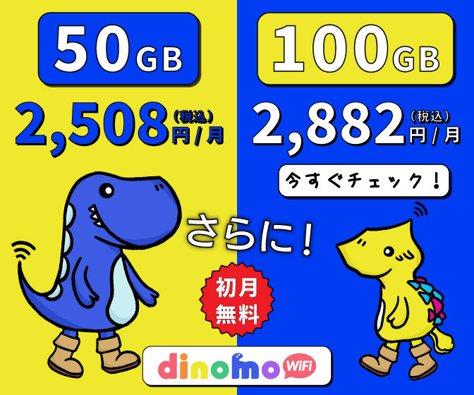 中長期での滞在や、動画視聴・テザリングなど大量のデータ通信をされる方には、Domino Wifiの大容量プランがおすすめです。